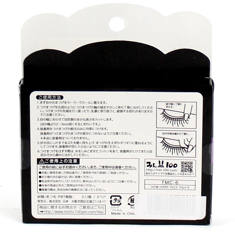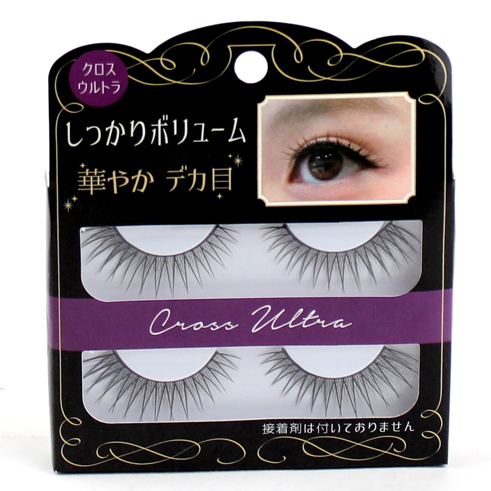 Voluminous cross type false eyelashes. These volume packed false lashes also have great length, and will make your eyes appear bigger and rounder. Easily create a gorgeous doe eyed look with these volume packed false lashes. Lash adhesive not included.