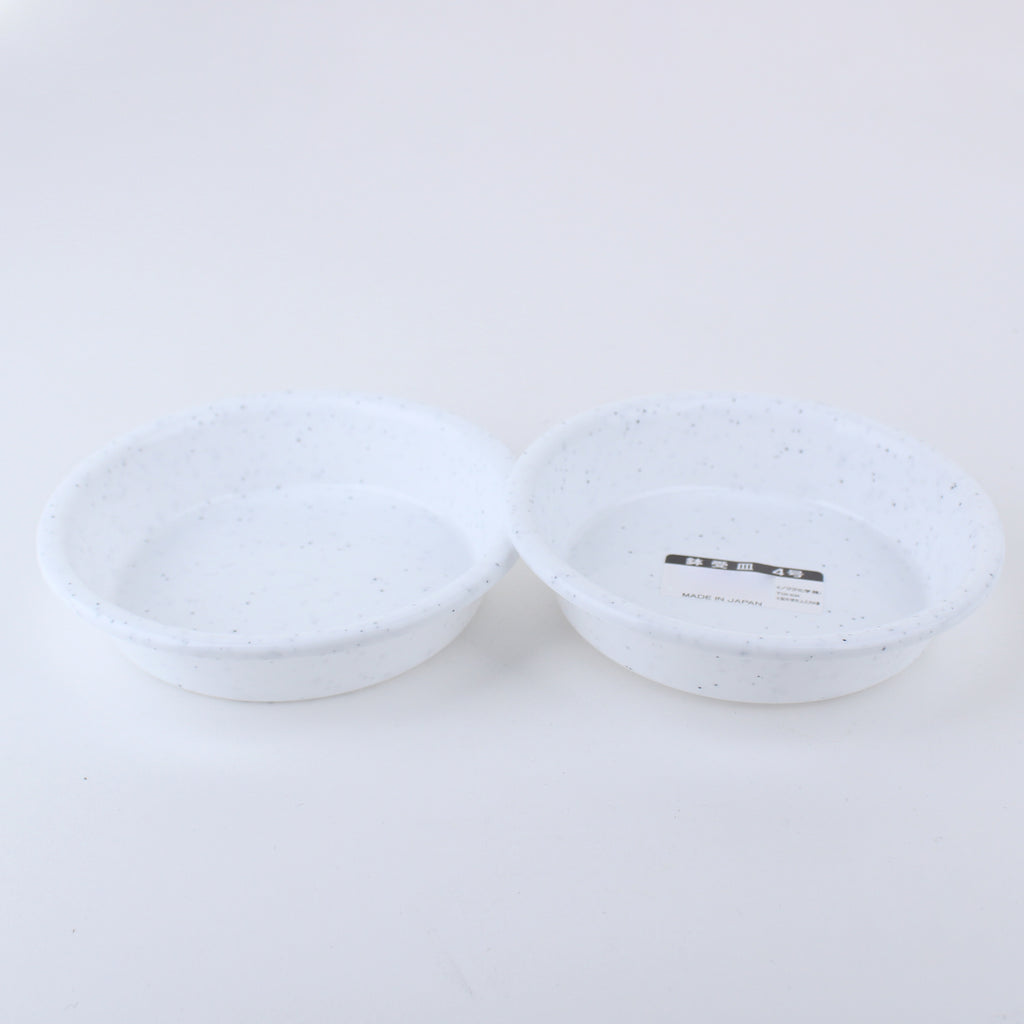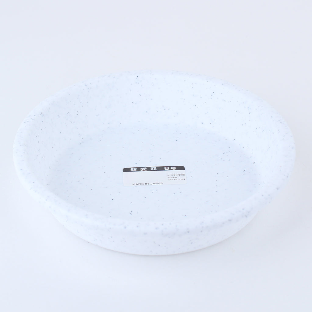 Plant saucers that can be used by placing them underneath household flowerpots. These handy saucers prevent water and soil from spilling out from the bottom of the pot. Comes in white. Made in Japan.