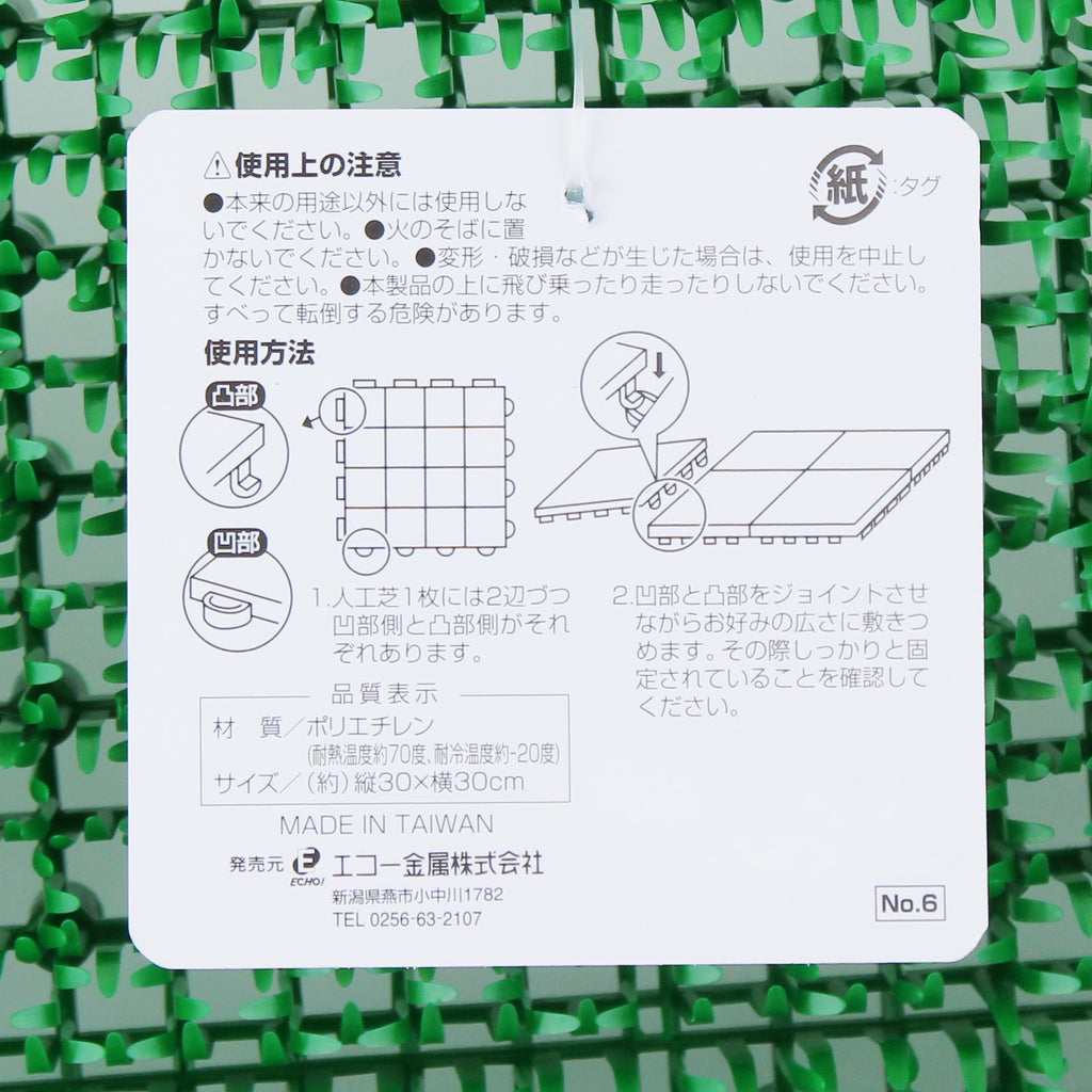 Artificial grass mat that comes in a jointed format that can be easily connected to other mats. Can be connected and used according to the size of your balcony, terrace or entranceway.