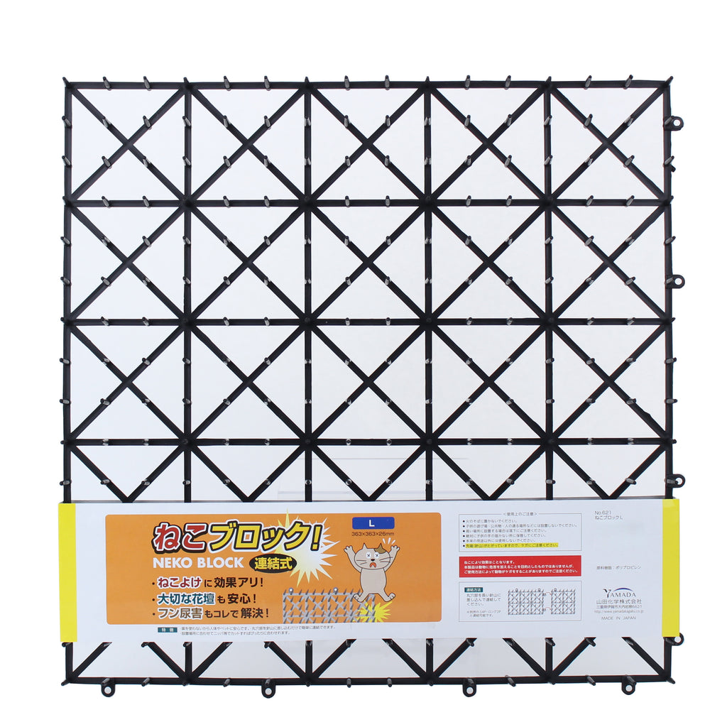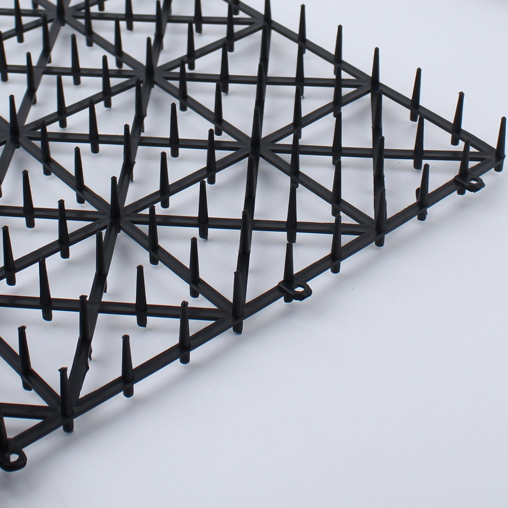 Animal spike repellent mat that is highly effective at keeping small animals like cats, out of garden beds. Safe to use in flowerbeds, and prevent animal urine and droppings. Comes in a square shape with connectable joints. Made in Japan.