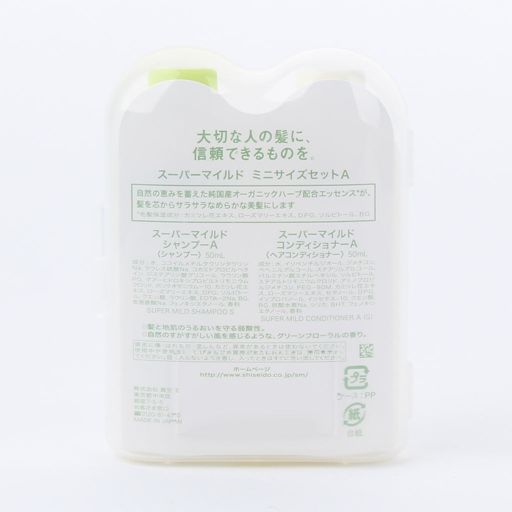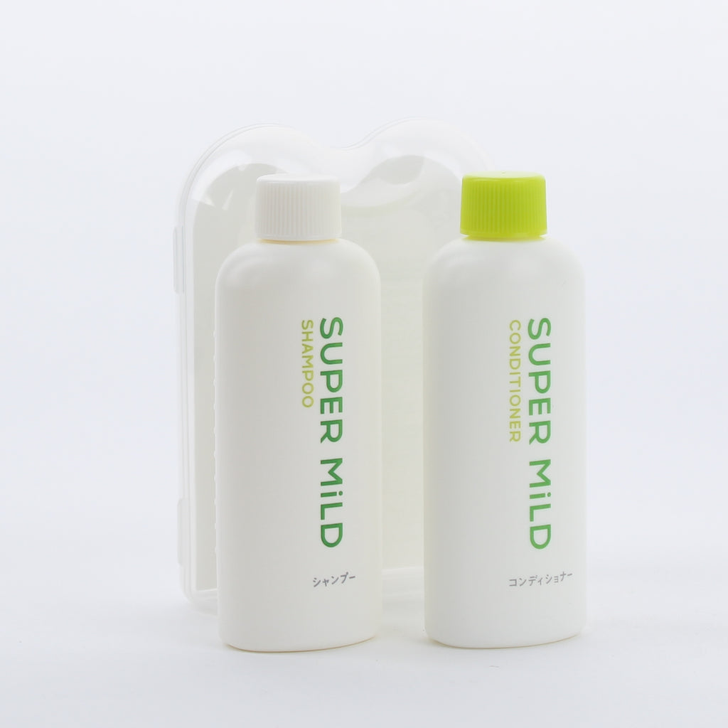 Mini size shampoo and conditioner set that comes in 50 ml portions. Features a green floral scent that evokes the refreshing breeze and nature. Comes in a convenient size to pack for travel purposes. Made in Japan.