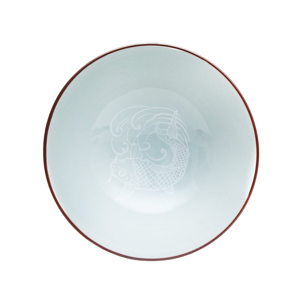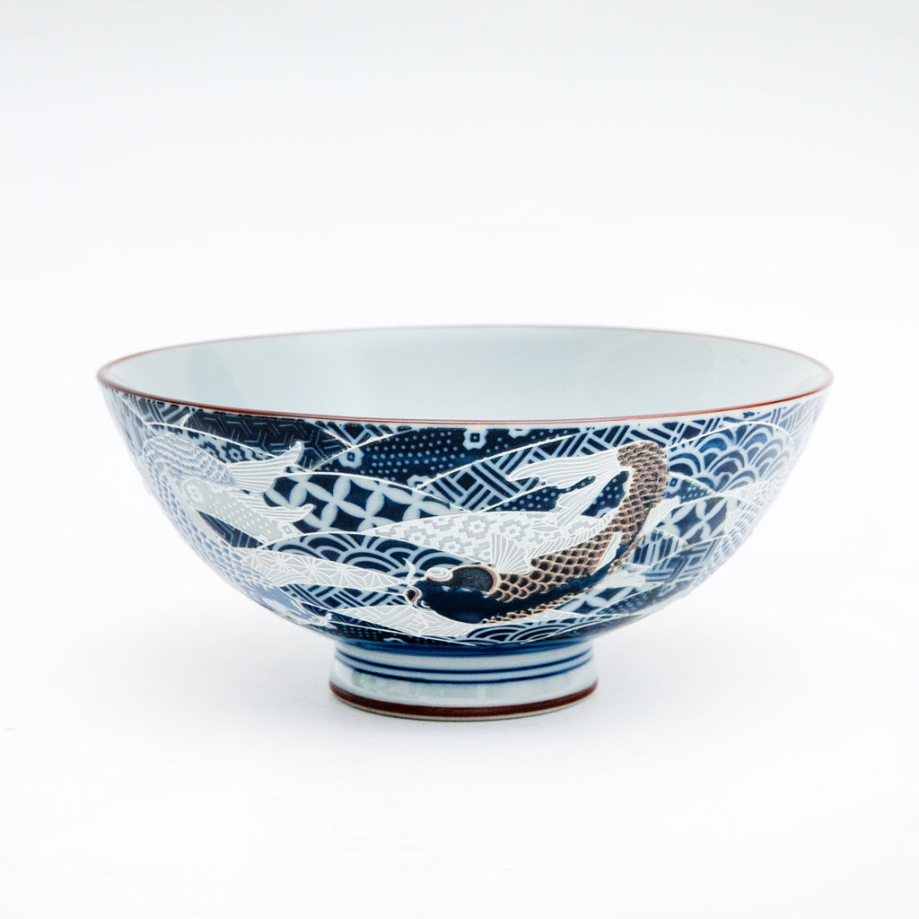 The painting of the carp is done in blue underglaze, and it is also characteristic as a good luck charm. It is just the right size for small and medium bowls. Made in Japan.