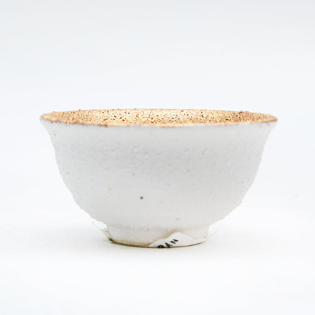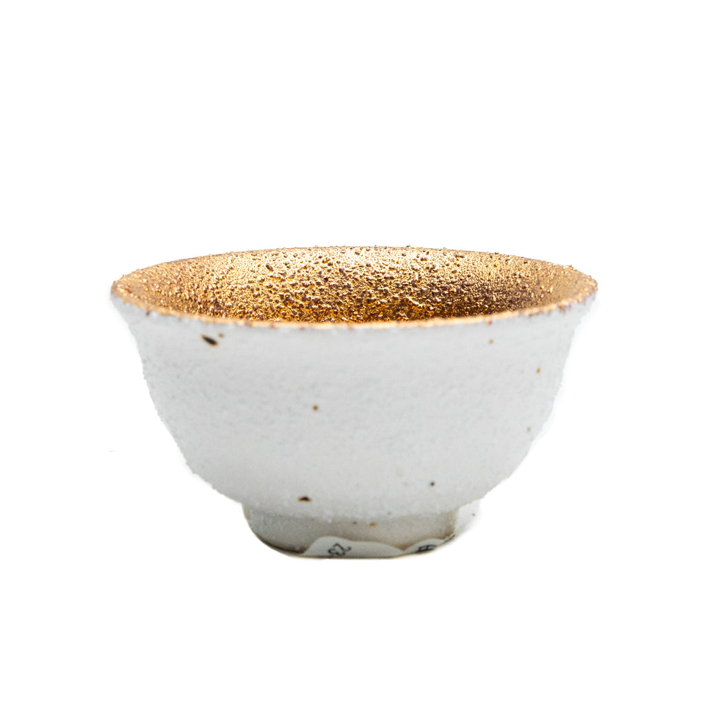 The simplicity of the white porcelain contrasts with the gold accents, creating a highly aesthetic vessel shape suitable for enjoying the aroma while savoring the sake. Made in Japan.