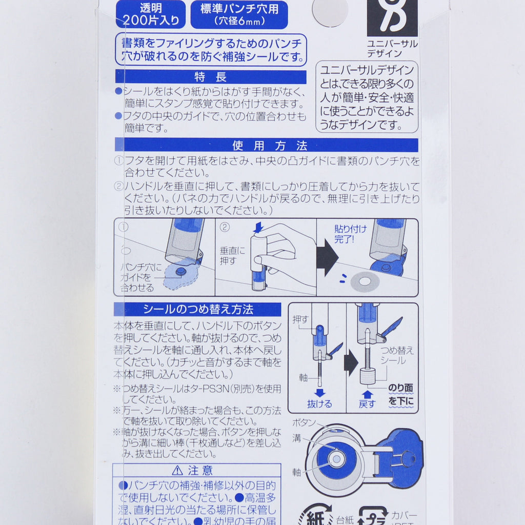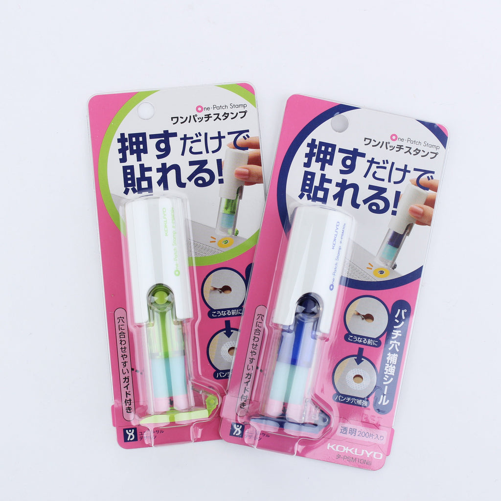 Kokuyo brand's reinforcement hole punch sticker stamp tool has a unique feeding mechanism that lets you easily apply the reinforcement stickers. As it doesn't use any release paper, there is no unnecessary waste generated. The center of the lid features an alignment guide to guide the sticker placement over punch holes. Comes in a green colour.