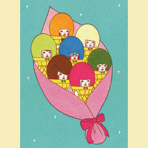 This greeting card features a colourful and unique illustration. Made using eco-friendly vegetable based ink. Comes in a bouquet theme. Made in Japan.