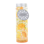This beautiful air freshener comes in a herbarium style container. Scented deodorizing beads were placed into a cylindrical container covered in a floral patterned film. The transparent and coloured beads shine beautifully through the vibrant floral pattern. Aqua Raison.