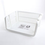 This organizer basket can be stacked to store. With two baskets from the same series, you can connect one to the other through the uneven top and bottom parts, without any gaps remaining. These organizers come with a wide opening so you can take out items while they are stacked together. Made in Japan.