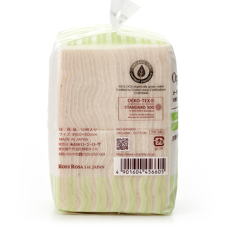 Packet of 50 organic cottons pads that are made of 100% organic cotton that was grown in soil without the use of pesticides or chemical fertilizers for a minimum of 3 years, and was finished without bleaching. The inner layers of thin cotton sheets are layered to create a super soft, fluffy pad that provides cushioning.