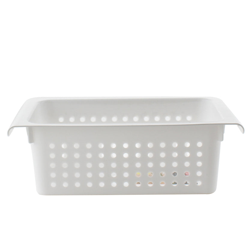 Basket designed to work with tension rods. You can rest the sides of the basket in-between 2 tension rods. This allows you to use dead space effectively. This basket is compatible with tension rods with a diameter of 13mm or less. Made in Japan.