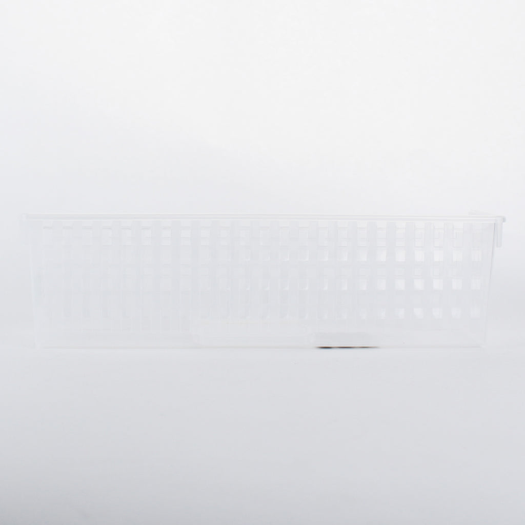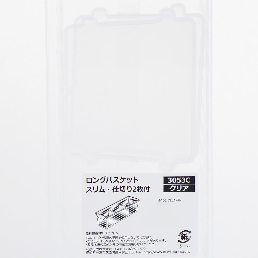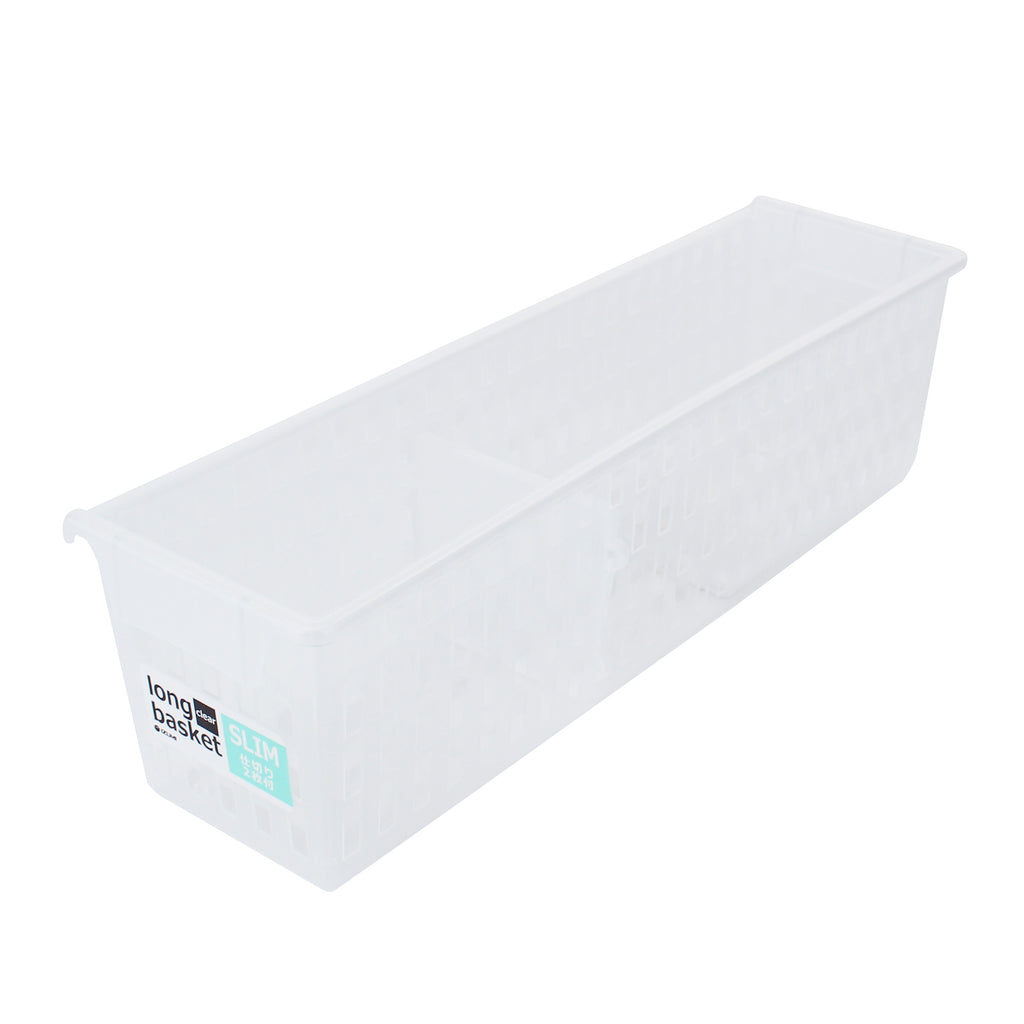 Long rectangular storage basket with a depth of 34 cm. Comes in the perfect size to use inside a standard dresser drawer. Convenient to use to store small clothing items like socks and underwear in dressers or closets. Made in Japan.