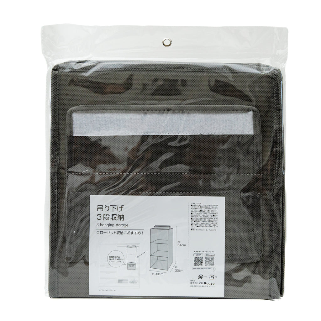 Three tiered hanging storage box that comes in handy to use inside closets and other storage spaces. Organize the various closets in your home in a beautiful way by storing towels, clothing and other items neatly.