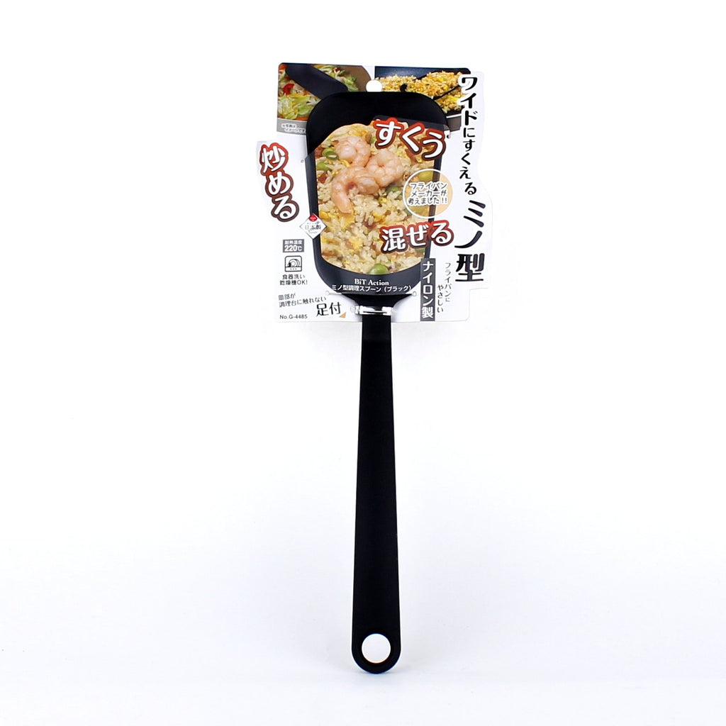 This oval shaped spatula comes in a wide design that allows for easy turnovers and scooping. Made on nylon materials. Dishwasher safe. Made in Japan.