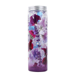 This beautiful air freshener comes in a herbarium style container. Scented deodorizing beads were placed into a cylindrical container covered in a floral patterned film. The transparent and coloured beads shine beautifully through the vibrant floral pattern. Citrus Plaisir.