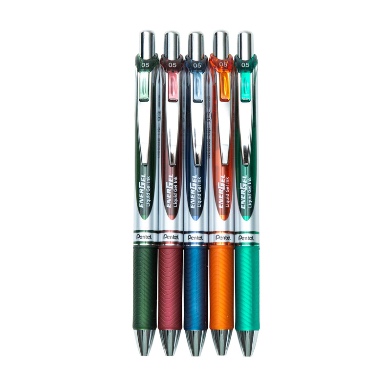 The ink utilizes EnerGel ink, resulting in dark, clear letters with a smooth writing feel. Additionally, it allows for quick writing and rapid drying. 0.5mm. Black.