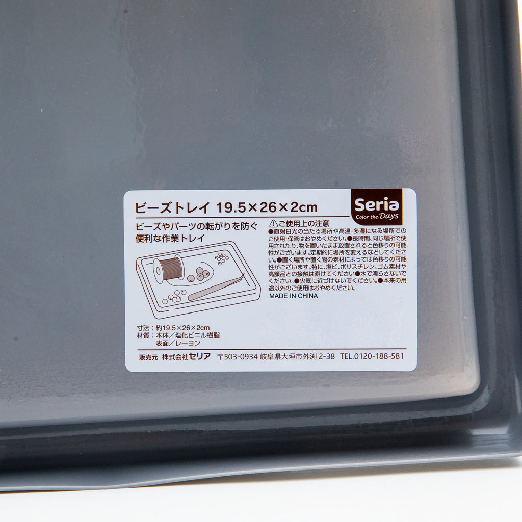A convenient work tray designed to prevent beads and parts from rolling around, featuring a brushed fabric.
