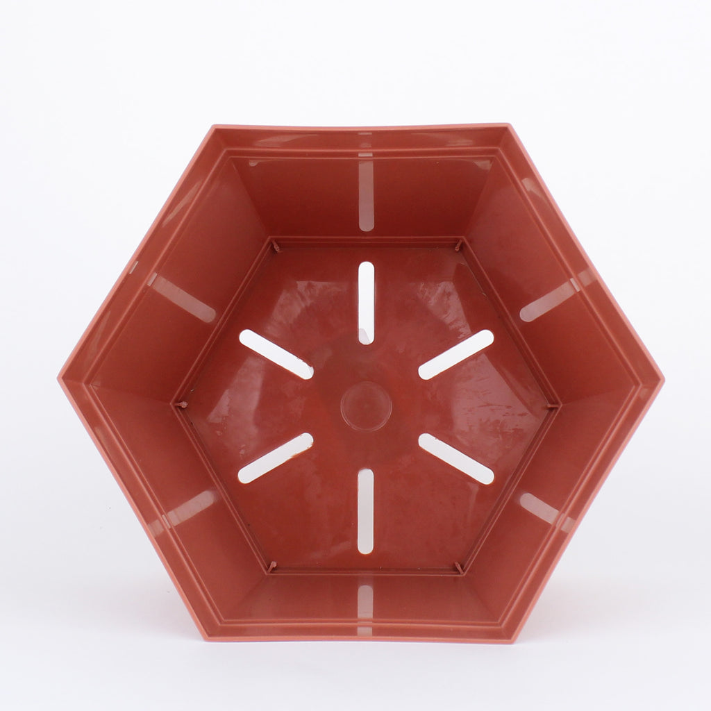 Flowerpot that comes in a cool hexagonal geometric design. The hexagonal design emphasizes the beauty of the flower arrangements with shadows and its unique design. Comes in a brown colour. Made in Japan.