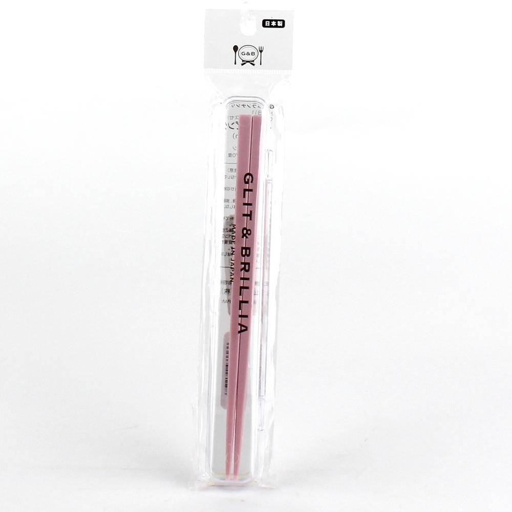A set of chopsticks and storage case, clear design with a logo print. Simple pink colour chopsticks of 18cm length included. Pair with the matching lunch box from the same series. Not dishwasher safe. Made in Japan.