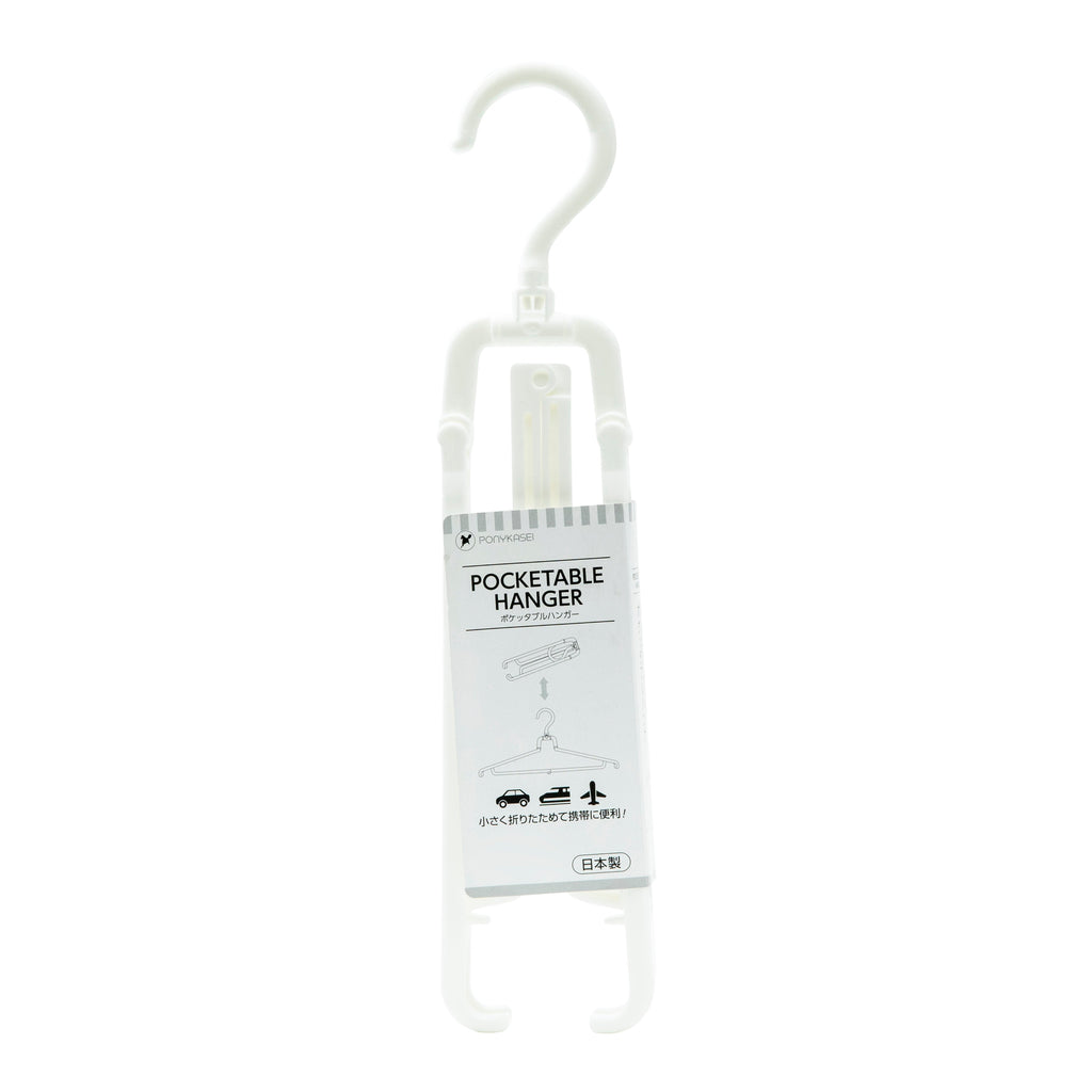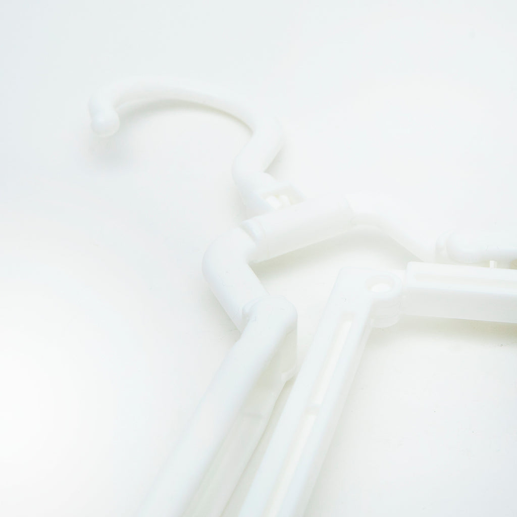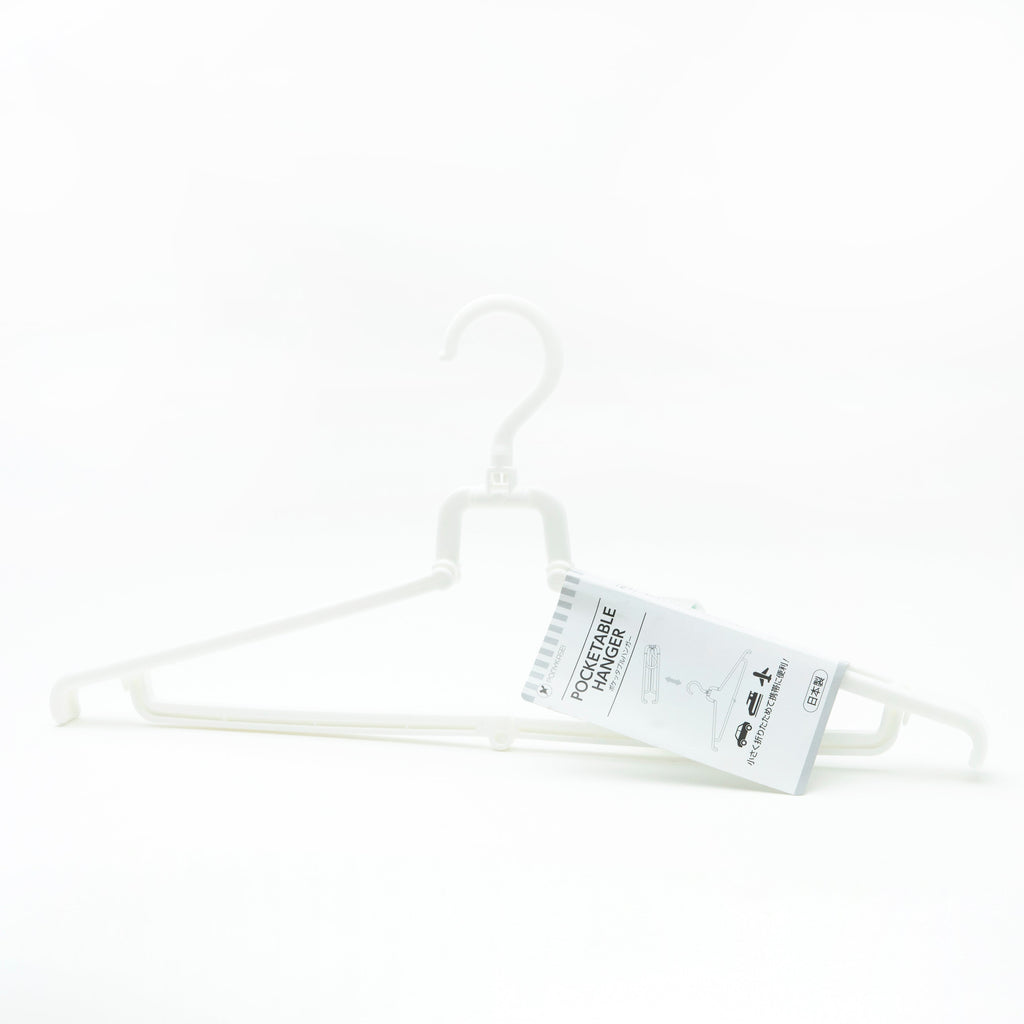 The center of the hanger and the hook part fold up, making it compact. It can be easily folded into a small, portable size, making it convenient to take along on trips.