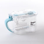Sugar pot that comes with a measuring spoon attached. Holding capacity 650ml. The spoon can be conveniently stored behind the lid. Clear type container where you can easily see the contents. Not only for sugar, this container can also be used to store salt, flour or cornstarch. Made in Japan.