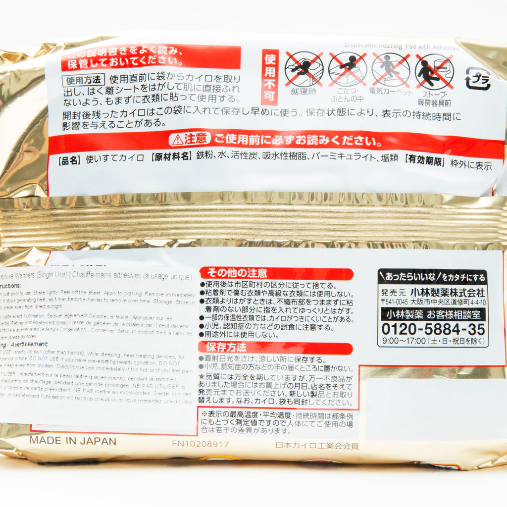 Set of 10 mini size adhesive hand or body warmers that reach a maximum of 63AC, and retains an average temperature of 53 AC. Can be expected to stay warm for around 14 hours.