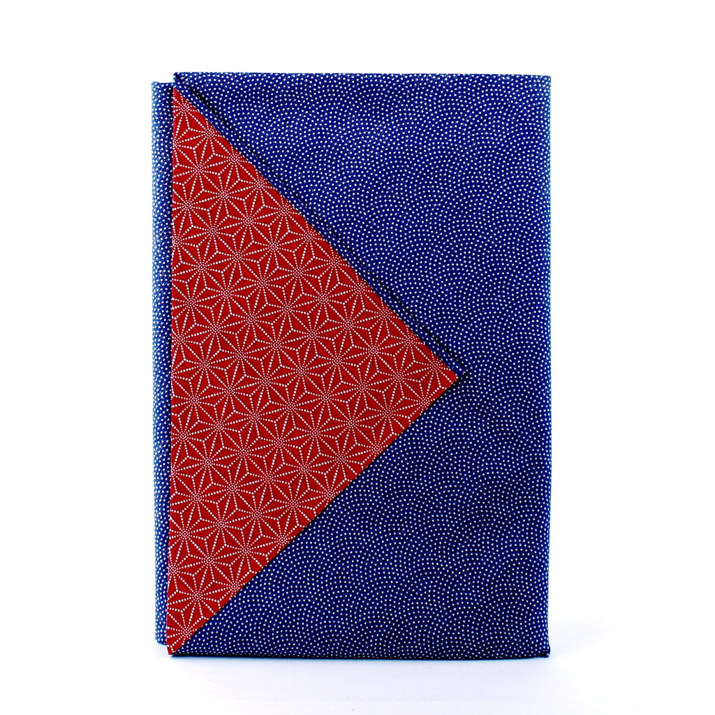 Made in Japan. This stylish, sophisticated and beautiful furoshiki wrapping cloth with traditional vibrant colours and gorgeous double-sided designs will show off anything you wrap, even a big item such as a large sake bottle. Front: Samekomon (shark skin) in navy. Back: hemp leaf in dark red.