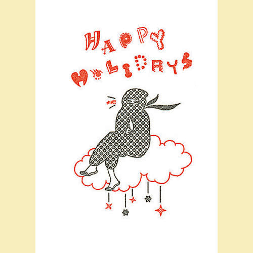 Quality greeting cards that use letterpress printing made by hand by craftsmen, where each colour is carefully printed. Made from 100% soft cotton paper, the soft texture and uneven qualities of the letterpress come through. Comes with one envelope. Features a ninja motif. Made in Japan.