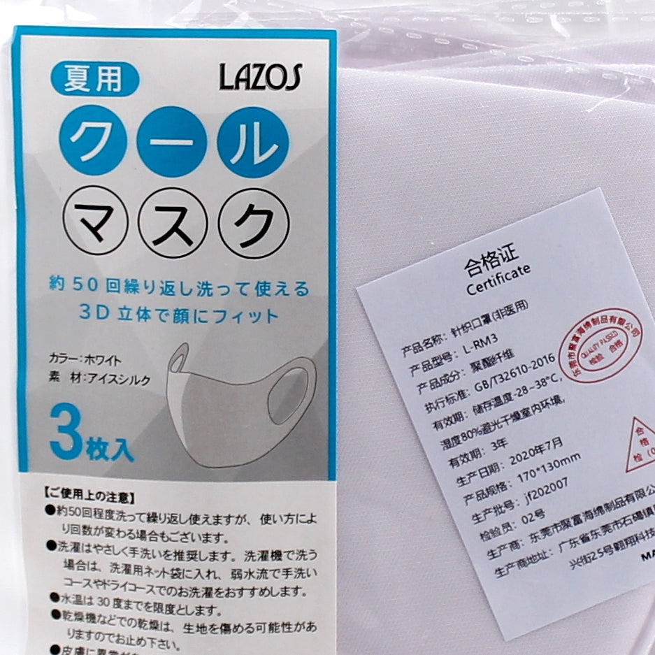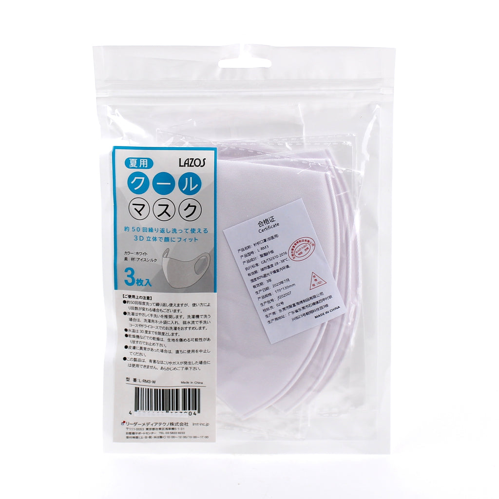 Breathable and washable mask. It stays cool in summer. 3 individually wrapped masks come in zipper packaging. These three-dimensional-shaped masks provide a better fit with a minimal gap. Comfortable fit. White.