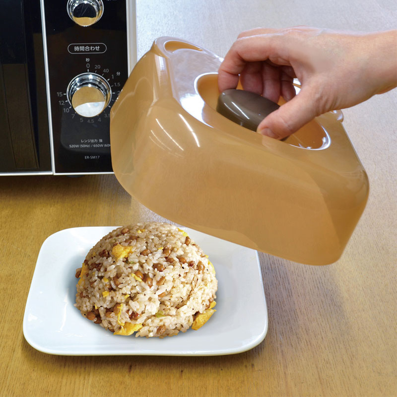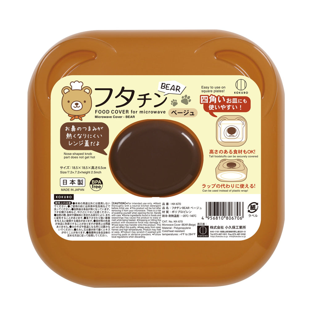 You can cover food placed on a plate with it, using it as a lid during microwave heating and as a food cover. Cute bear shape. With ear-like protrusions and an air hole under the nose. Beige. Made in Japan.