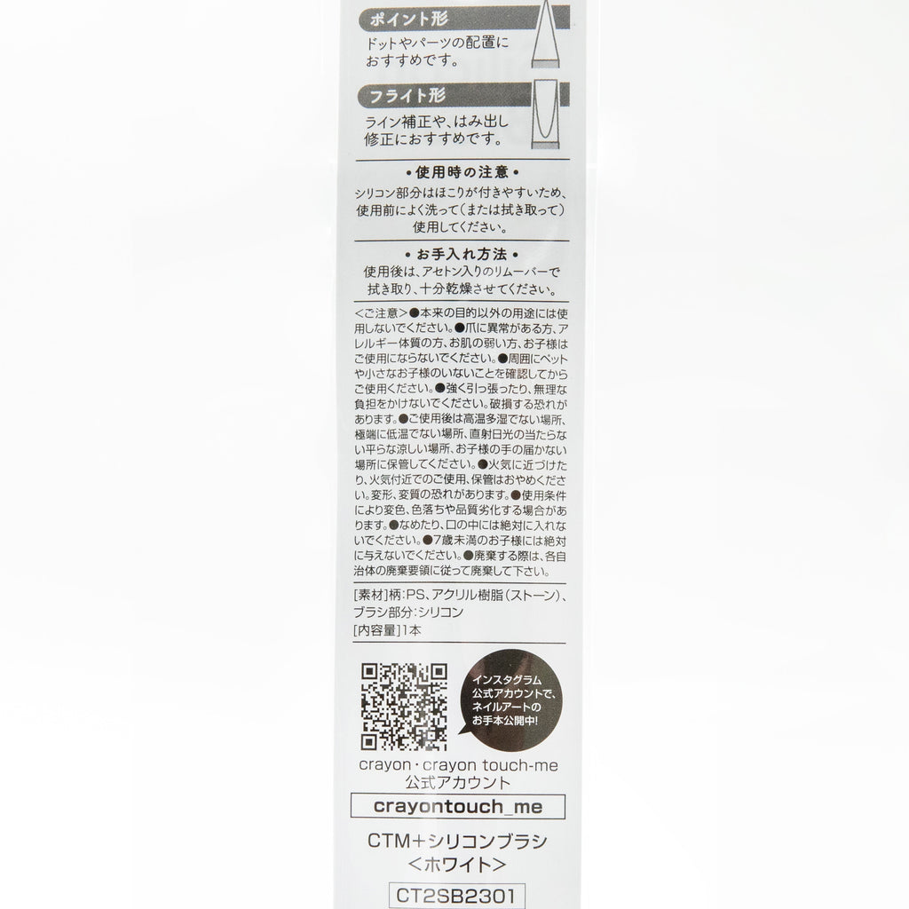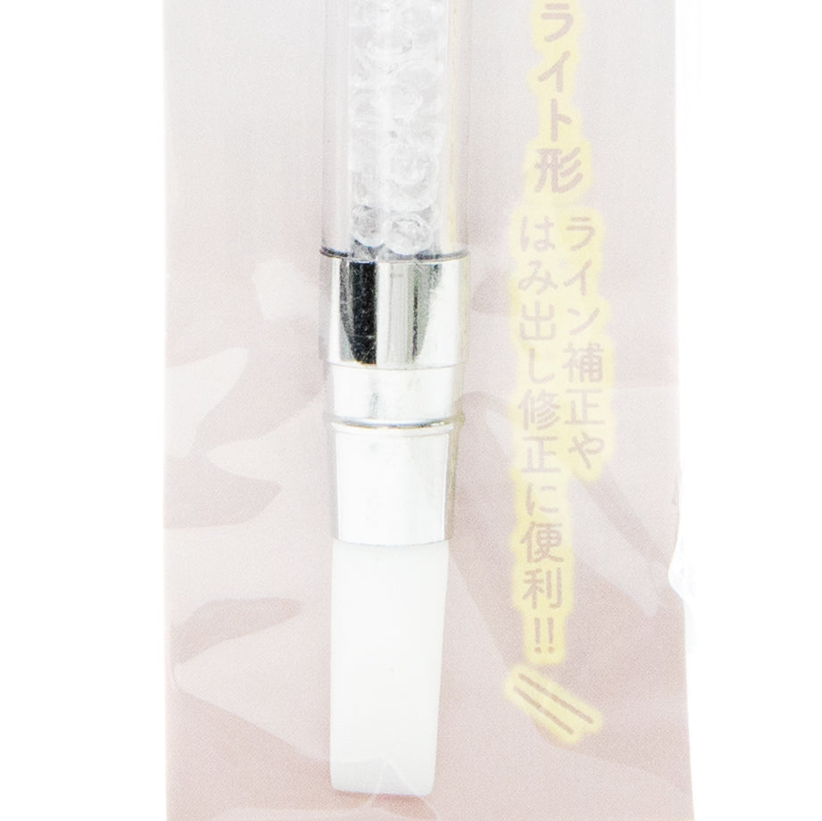 Silicone nail art brush that features a double-ended tip. Comes with both point and flight shaped brush ends. Can be used in a variety of ways, such as using the flight type brush to correct protruding parts, or the point type brush to paste nail stickers or glitter powder. Comes in a white colour.