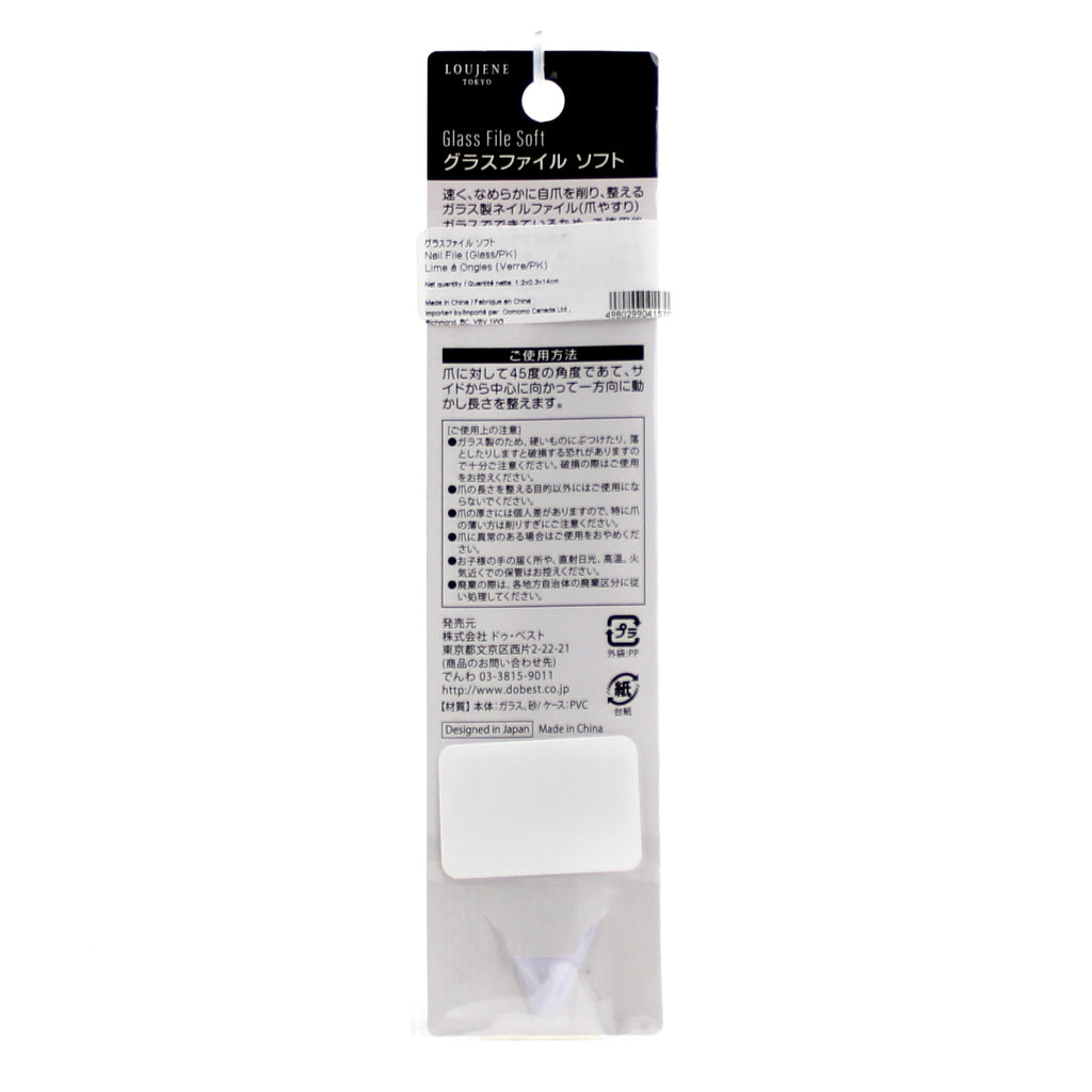 A double sided durable glass nail file that is recommended for those with thicker nails. This soft type, fine grained nail file is ideal for thick nails or toe nails, and delivers a smooth finish for thin to normal type nails. This nail file can be washed and disinfected in hot water, and is easy to care for and hygienic. Comes with a case.