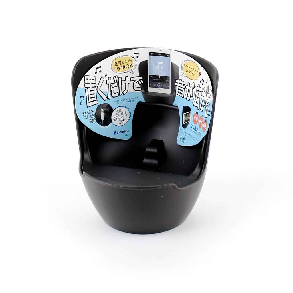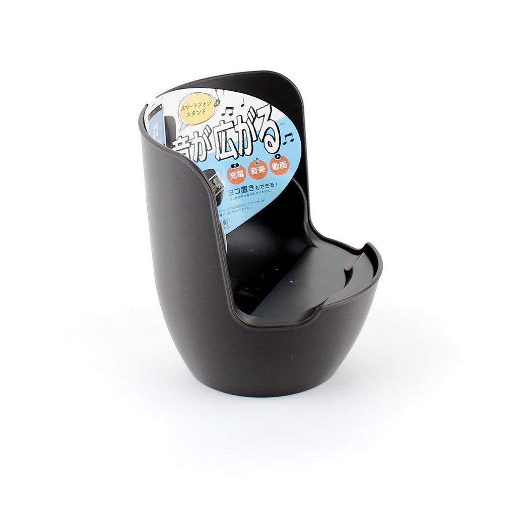 Dark grey colour smartphone stand that does not require a power supply. Simply stand your phone in it upright and you can listen to music as the sound travels. Enjoy being able to listen to your favourite music while charging your phone at the same time. Allows you to listen to your music in various places. Made in Japan.