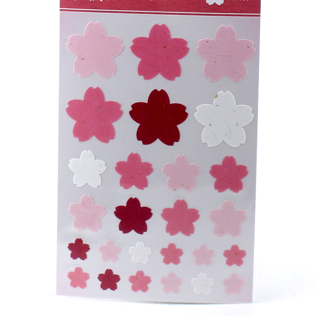 Set of beautiful cherry blossom flower stickers. Each set comes with three different sizes of cherry blossoms: small, medium and large. These stickers are made of Japanese paper, or washi, and feature both silver and gold foil stamping accents. Use these stickers to decorate your day planner, agenda or notebooks, or even to embellish gift wrapping or letters to friends or family. Made in Japan.