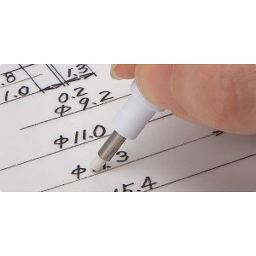 This push type eraser pen comes in a rounded design with a diameter of 2.3 mm. This ultra fine eraser is ideal to use to correct small details like decimals or illustrations. Only requires a light touch to firmly and thoroughly erase.